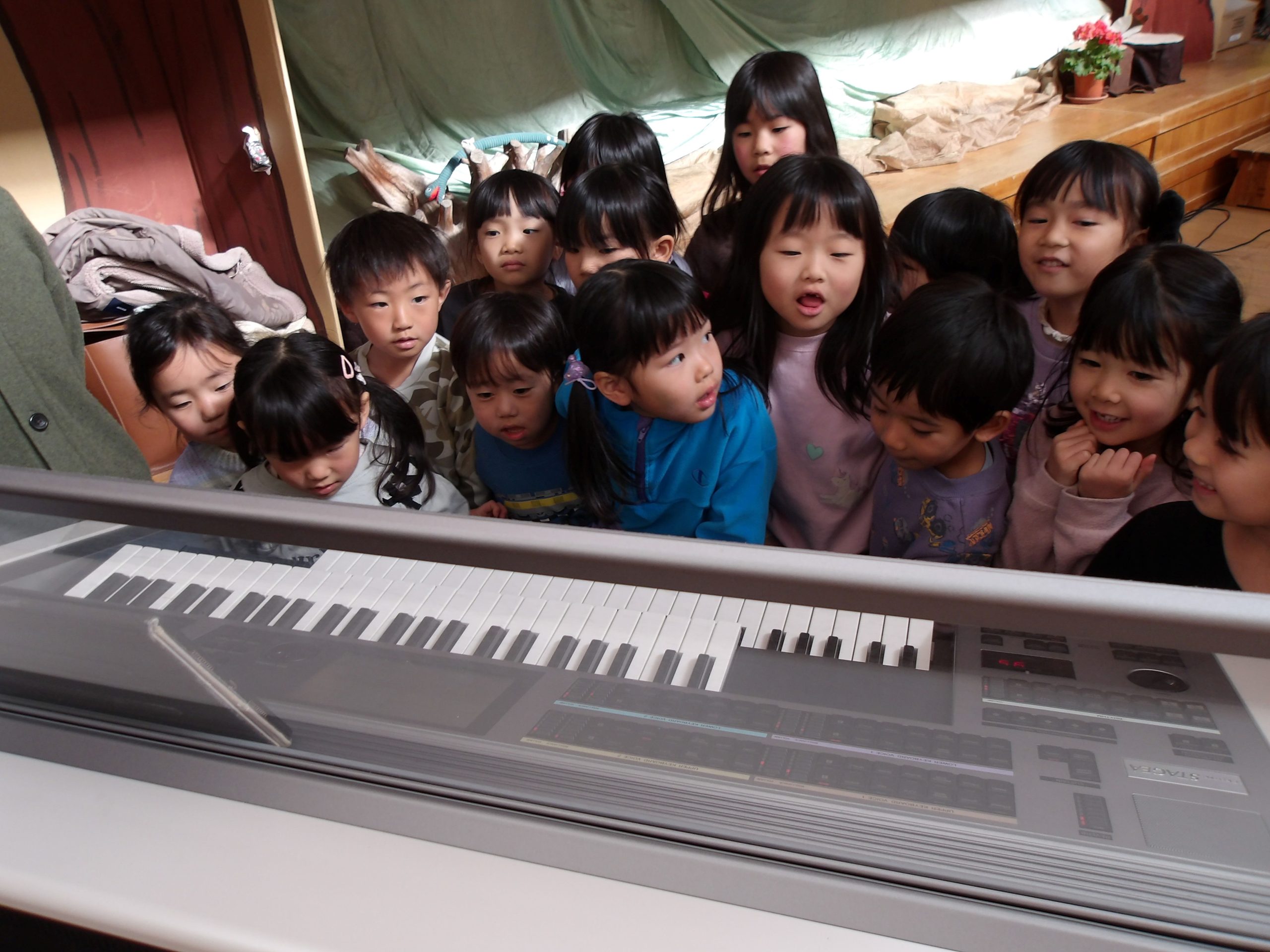 ファミリークラスの子どもたちを対象に、出張コンサートがありました。子どもたちが大好きなトトロのメドレーやカレンダーマーチ、虹などを一緒に歌ったり、素晴らしい演奏を聞いたりと楽しい一時を過ごしました。エレクトーンにも興味津々でした。