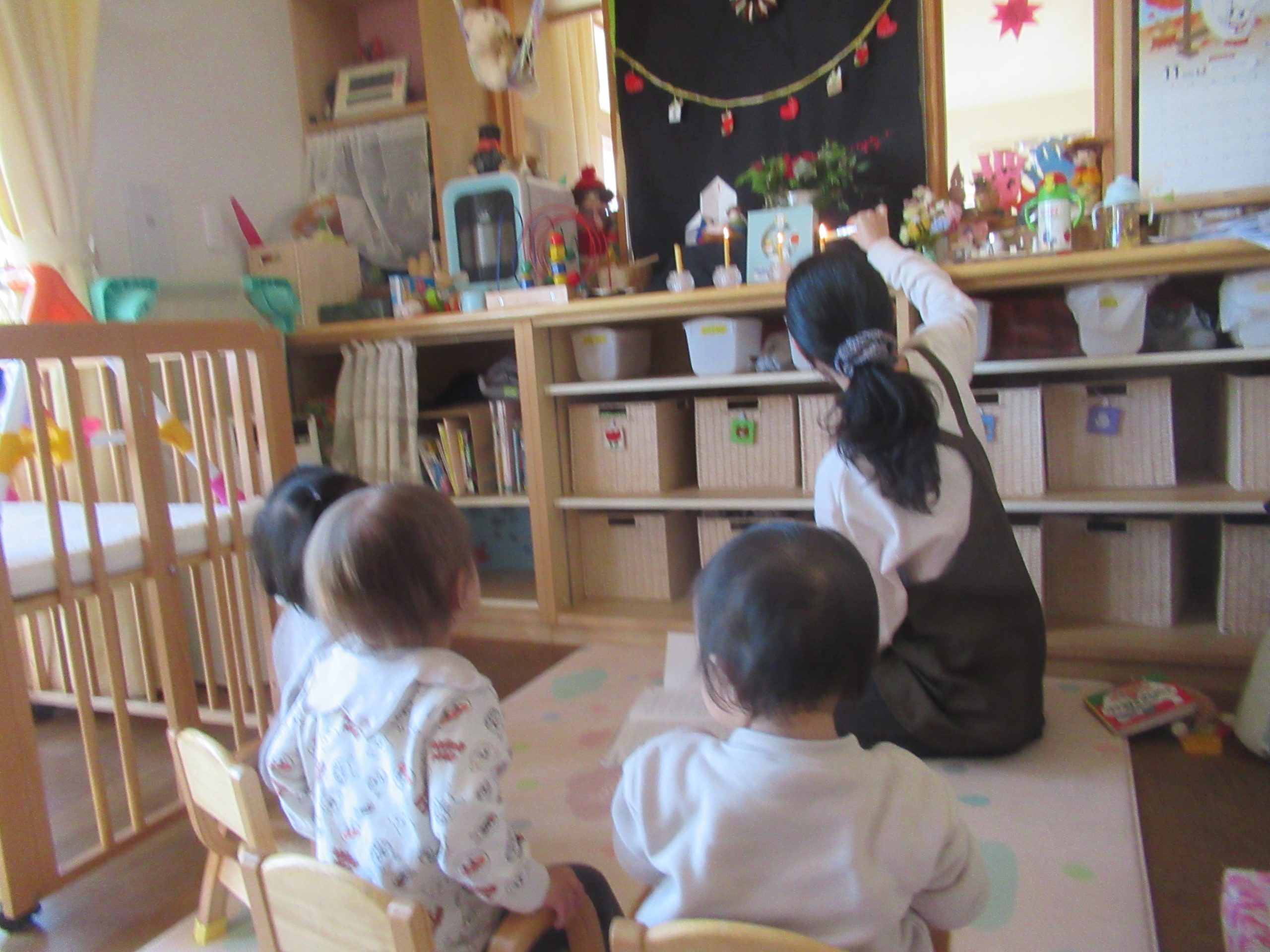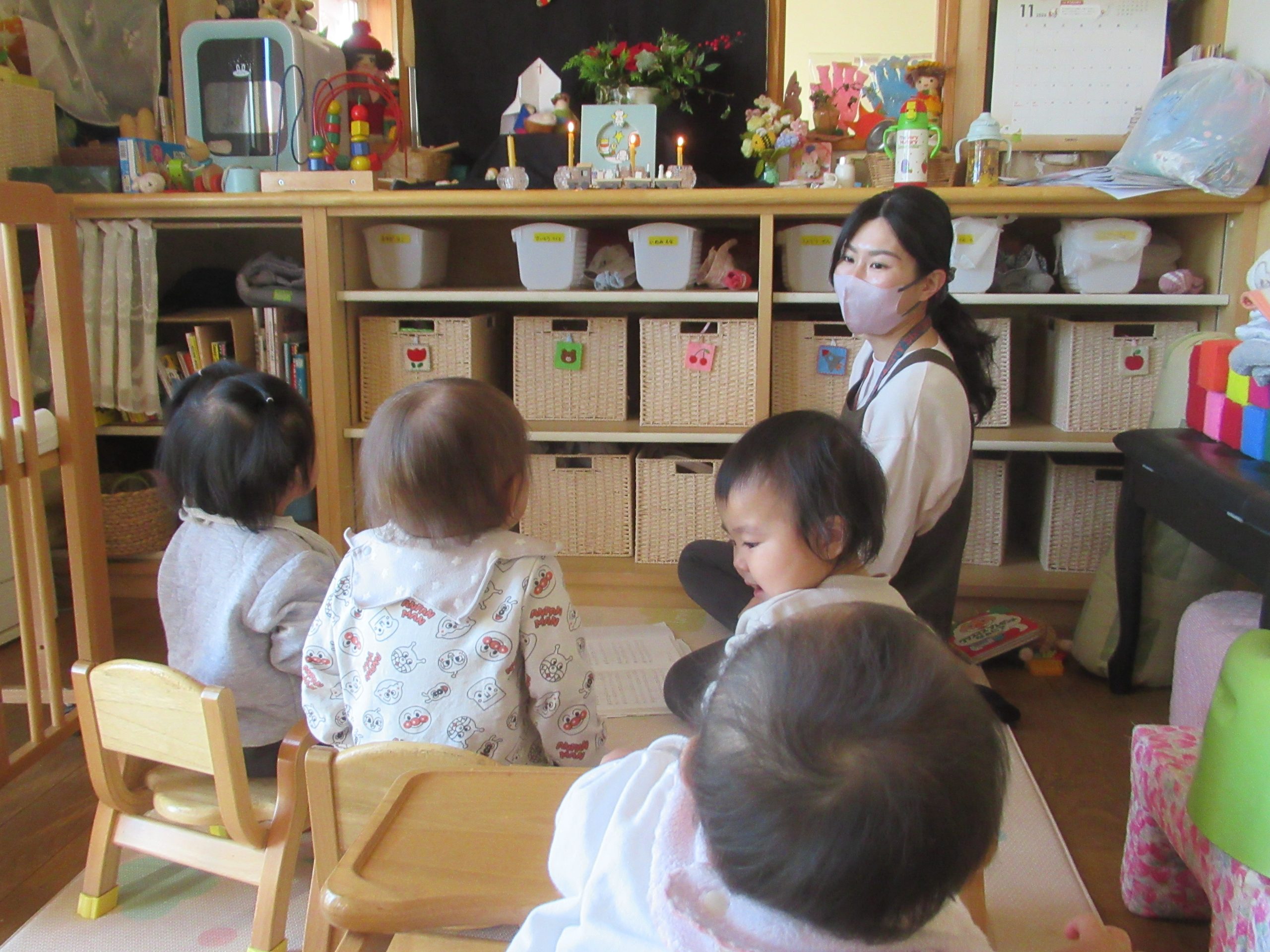 ことり組さんのアドベントクランツにも、3本目の蝋燭に火が灯りました。先生が絵本を読み聞かせしているときから、蝋燭に火が灯ることを知っていて期待しながら見ているようでした。クリスマスにはお友だちやお家の人と一緒に、みんなでお祝いしようね🎅