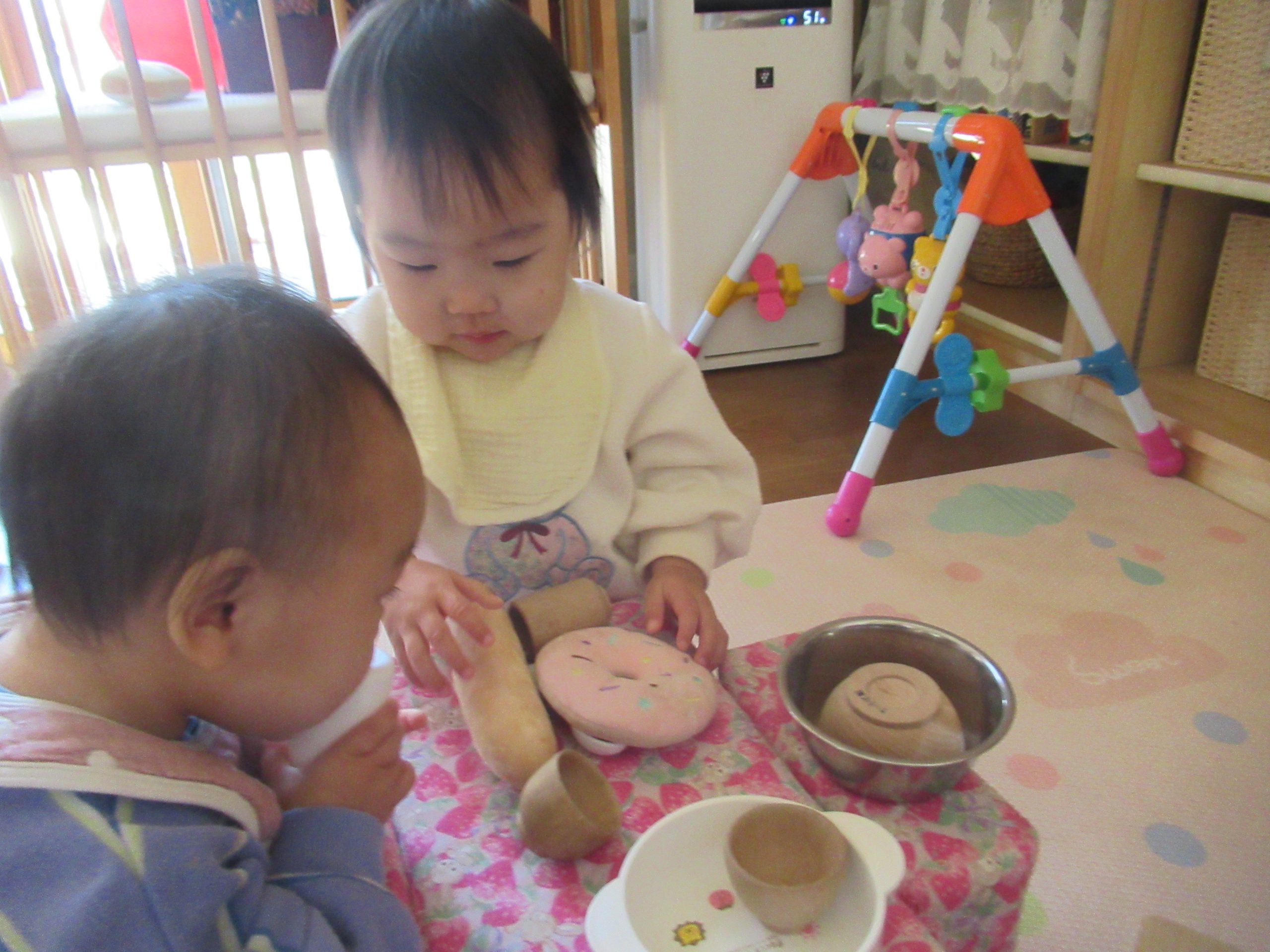 元気なことり組さんたちです。お友だちのやっていることや持っているもの、その指先までも気になります。「ほら これだよ」「えっどれ?」「これだったかな…」こんな声が聞こえてきそうです。