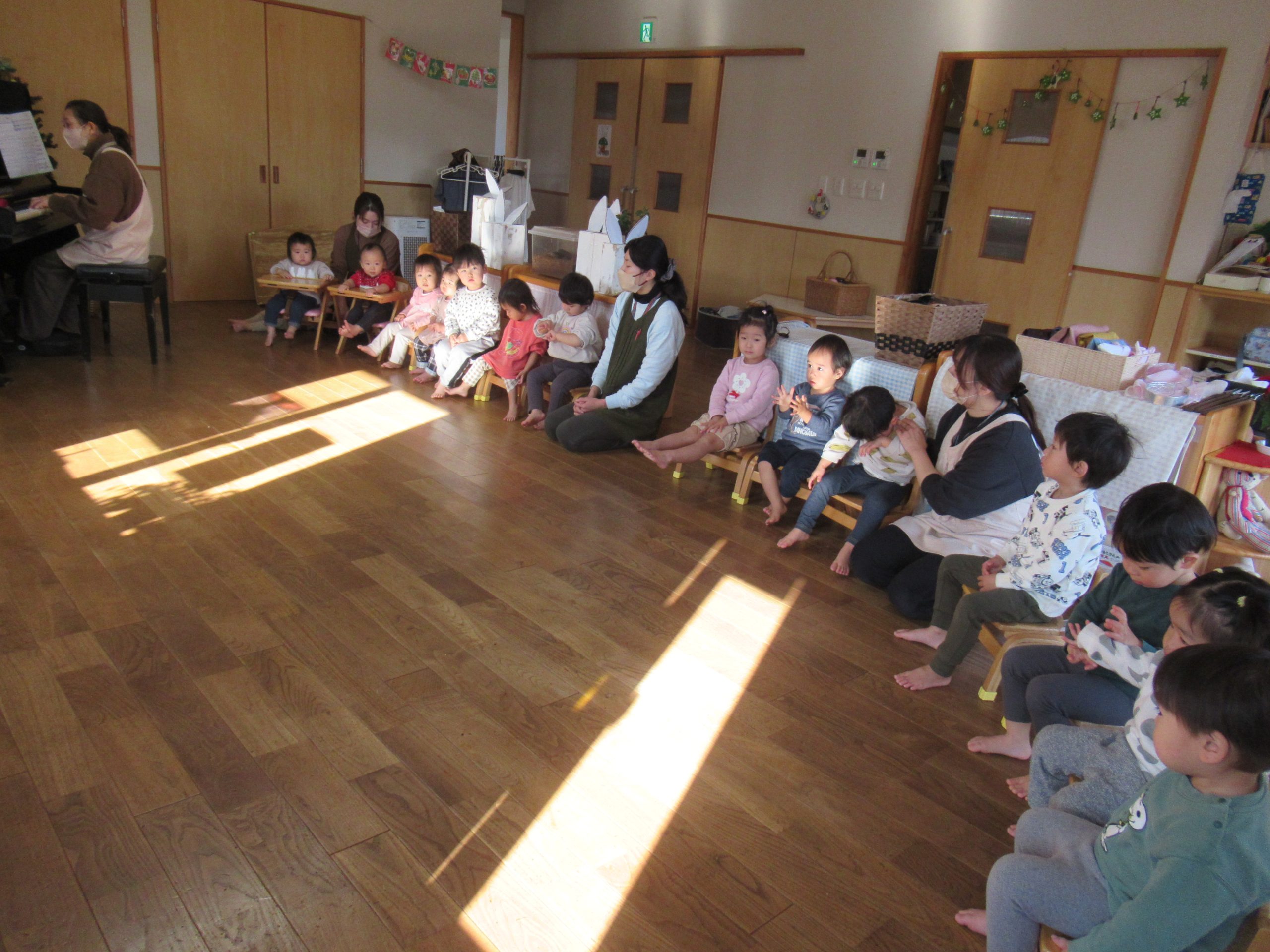 休んでいたお友だちが登園してきました。「元気にして下さって 神さまありがとございます。」今日は4本目の蝋燭に火が灯り、子どもたちは静かにして炎を見つめていました。今週末は、聖愛ちいろば園のクリスマスお祝い会です。お友だちやお家の人と一緒に、イエス様のお誕生をお祝いしましょう。
