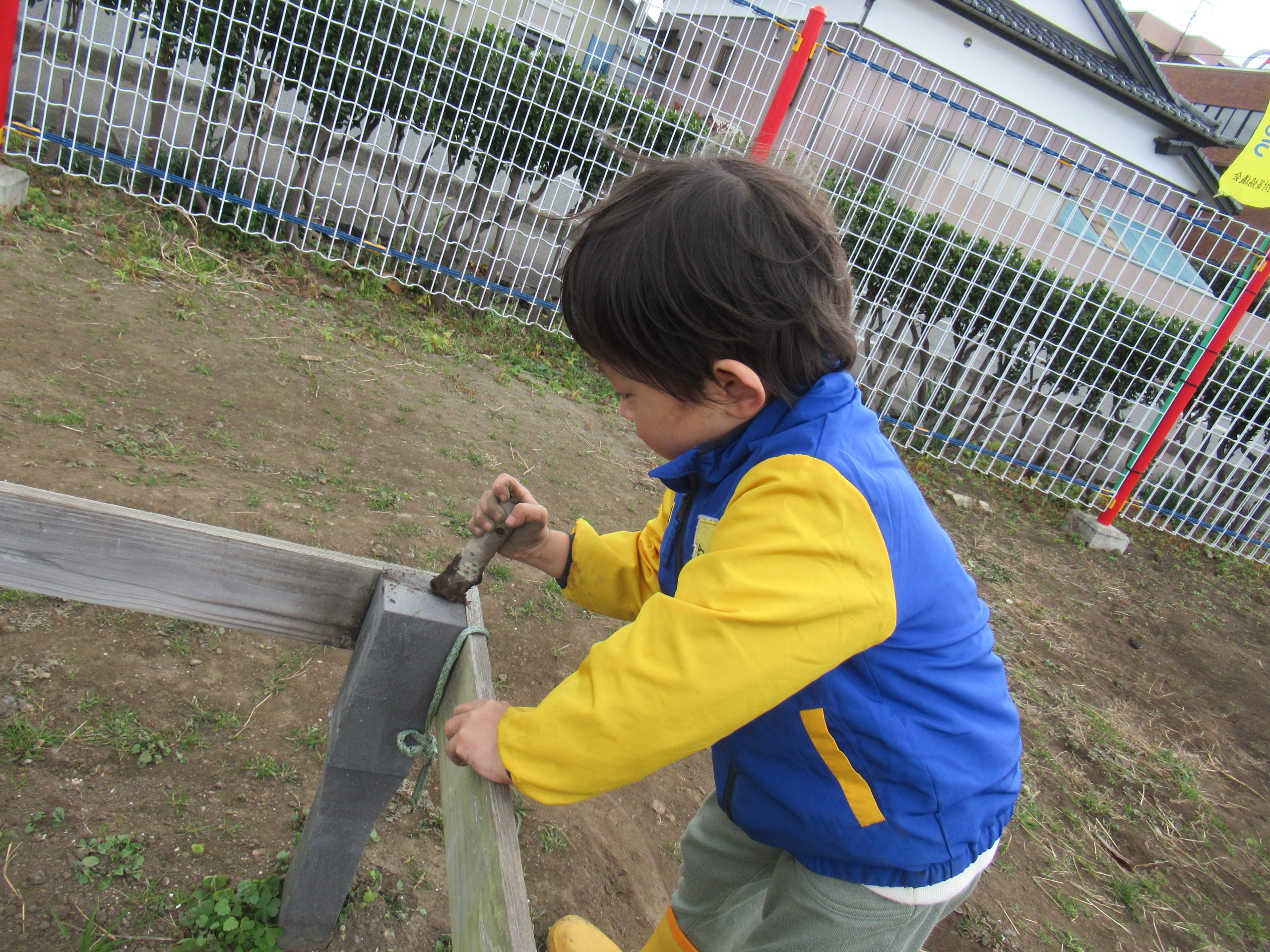 お友だちと、先生と、気になった物などとの関わりが拡がっています。○○にどんな言葉が想像できますか?お世話をしながら年下児と遊ぶ子、年上児のやることが気になって一緒に遊びたい子、先生のお仕事の手伝いを喜ぶ子、不思議なものを見つけて、道具に見立てて作業を続ける子・・・。ちいろば園の素敵な子ども達です。