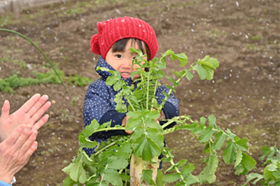 季節の野菜が育てられていて、子どもたちはその中を自由に探索。