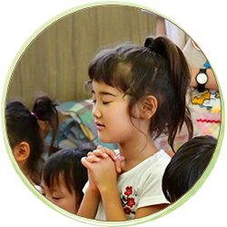 私たち人間は、神さまによって生命を与えられ、唯一無二の存在として、豊かに守られ愛されています。一人ひとりは、資質も発達段階も異なりますが、みんな尊くかけがえのない存在です。幼いときから自分が自分であることを喜び、自分を信じることができる心が育つよう、一人ひとりの発達の援助を行います。