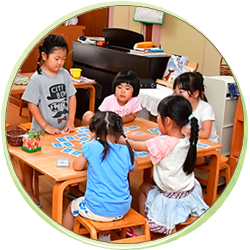 子どもは周りの状況をよく見ています。身近な大人や友だちとの関わりの中で共感や模倣をしながら、学習の基礎を身に付けていきます。また、子どもたち自身が感じて、考えて、心を動かして、自発的に行動できる保育を大切にし、生活意欲や豊かな心を育みます。