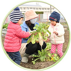 神様が創造された自然。四季折々に変化する不思議や命に出会い、五感が揺さぶられる経験によって、一人ひとりの豊かな心が育まれる保育を目指しています。