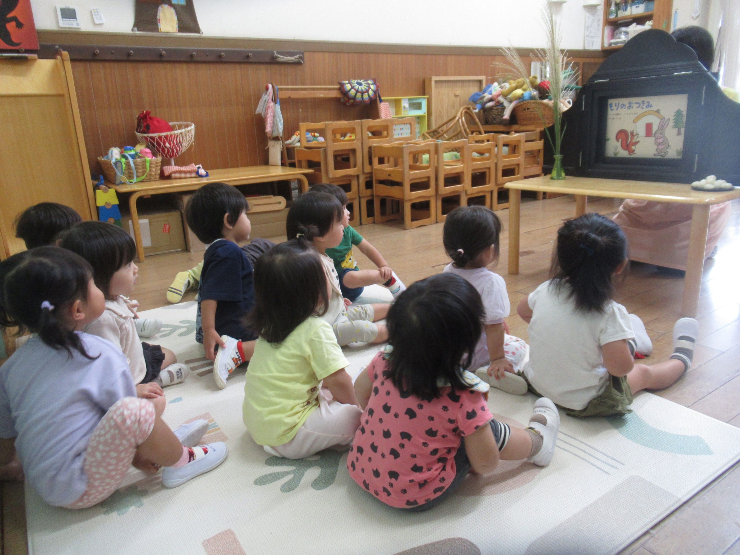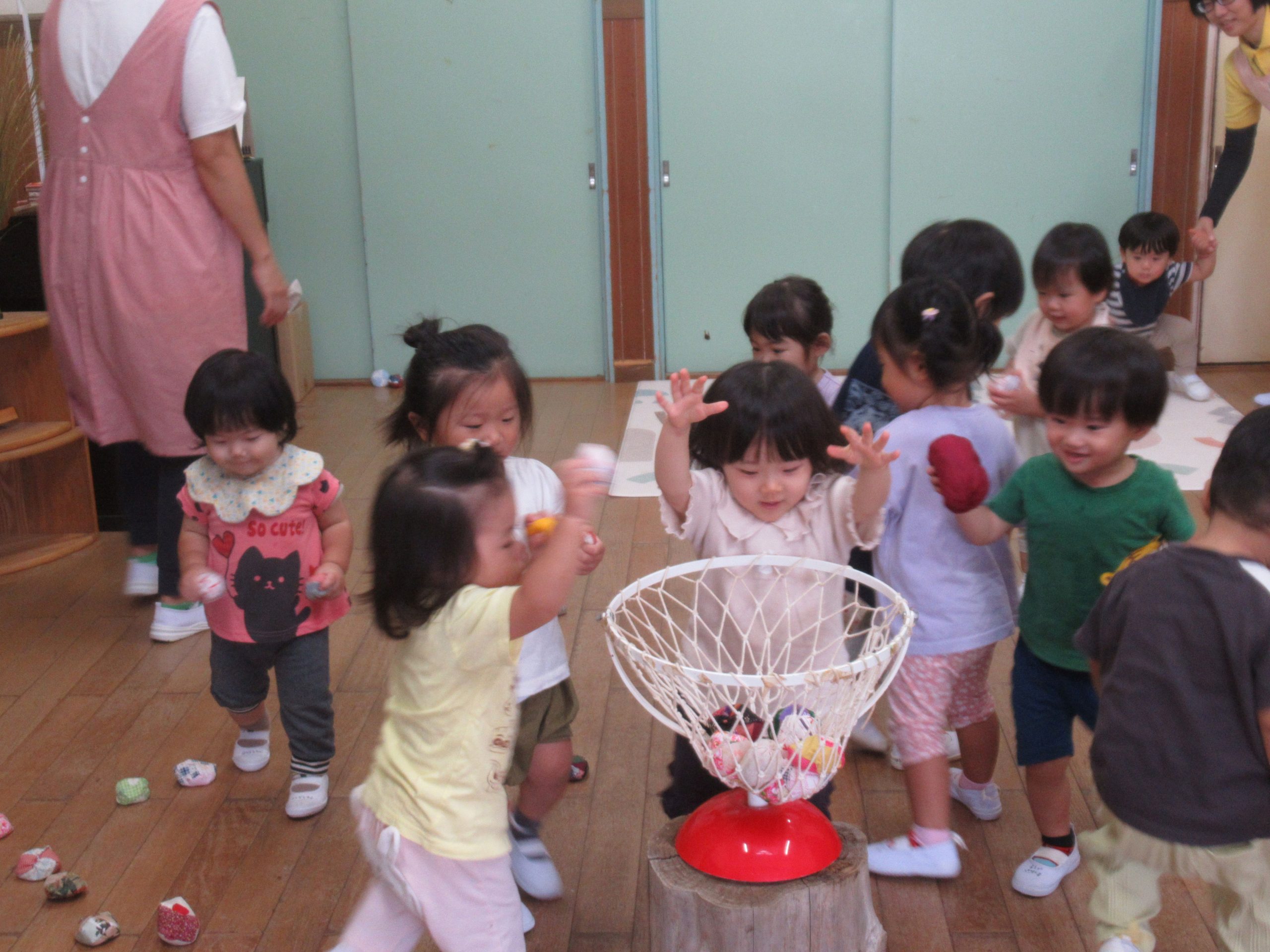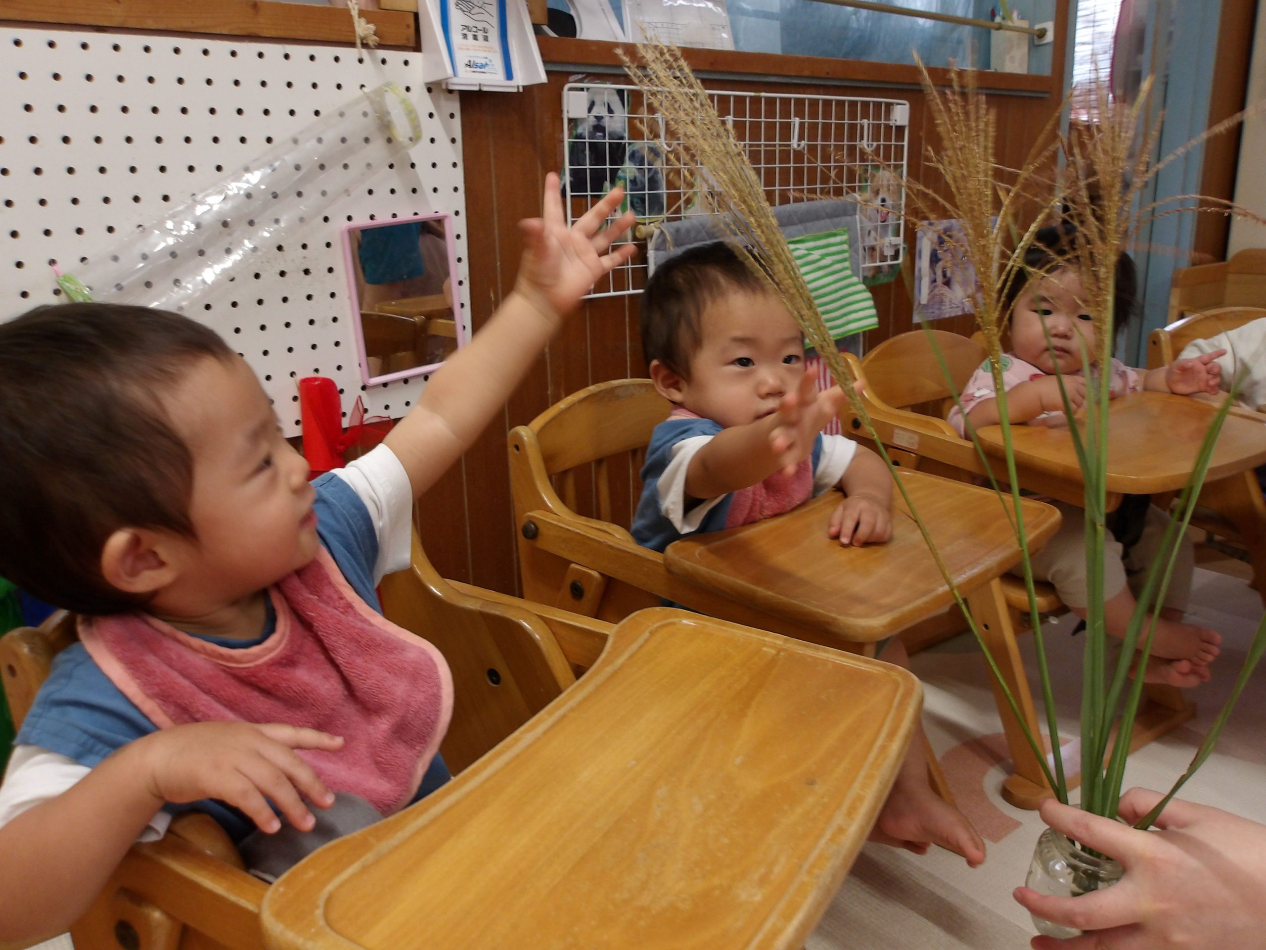 保育室や玄関にススキや萩の花を飾り、お月見会をしました。お月見の由来やススキを飾る理由を聞き、各クラス毎にクイズやゲームを楽しみました。きれいなお月様が見えるといいですね。