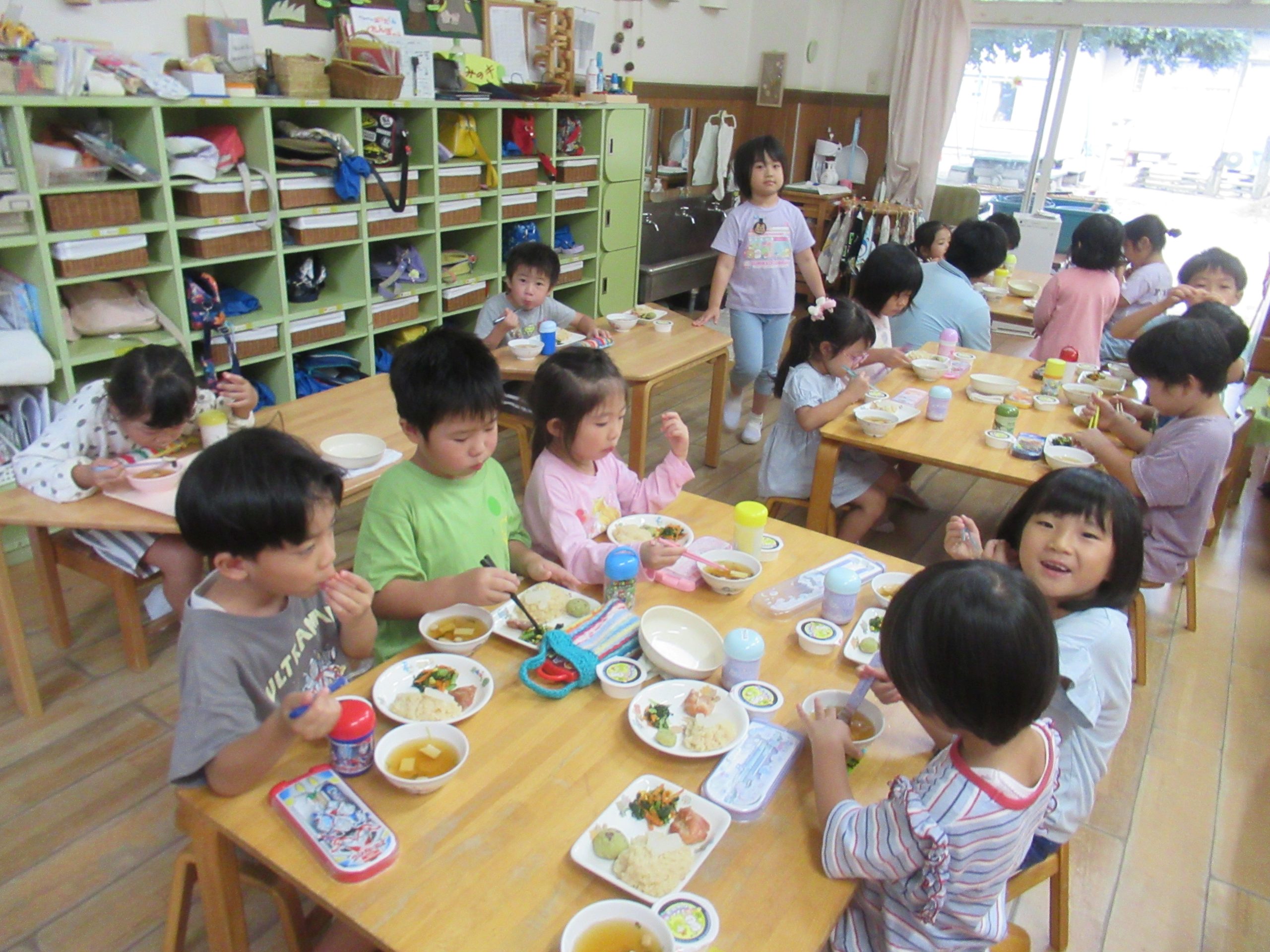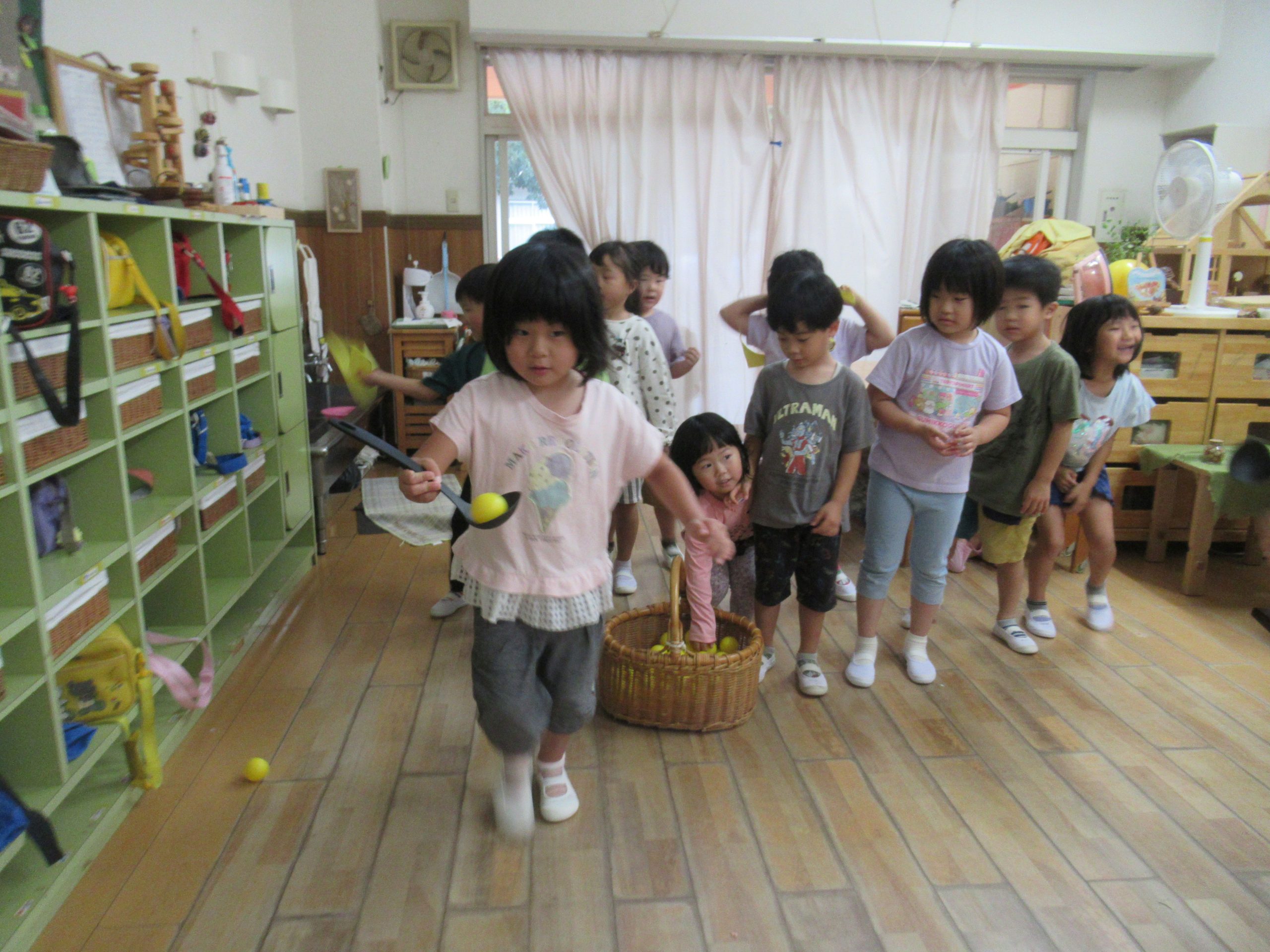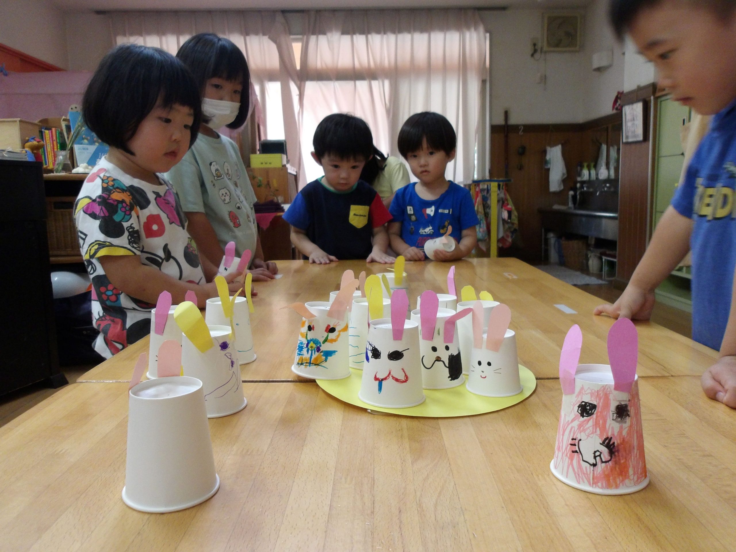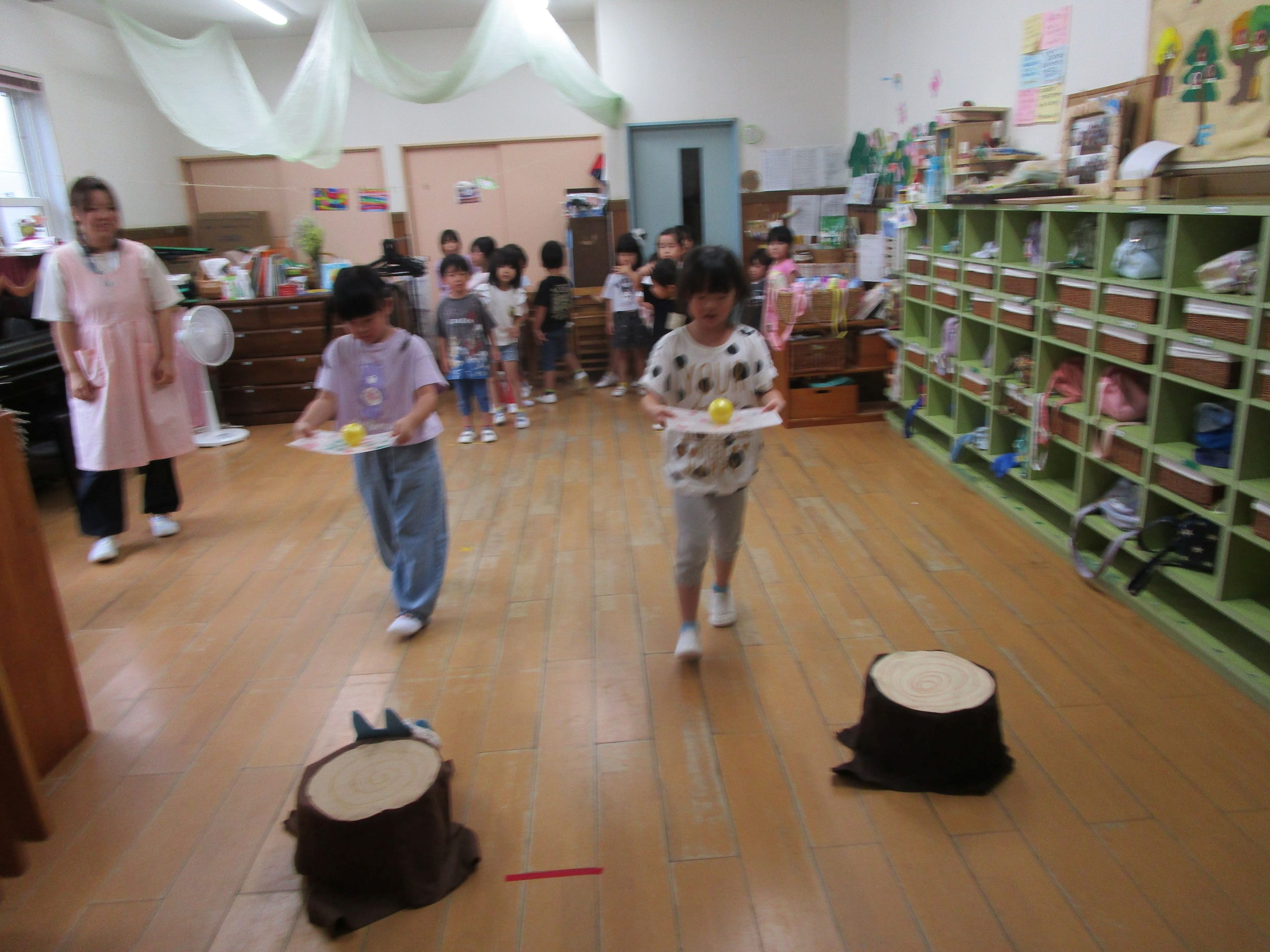 保育室や玄関にススキや萩の花を飾り、お月見会をしました。お月見の由来やススキを飾る理由を聞き、各クラス毎にクイズやゲームを楽しみました。きれいなお月様が見えるといいですね。