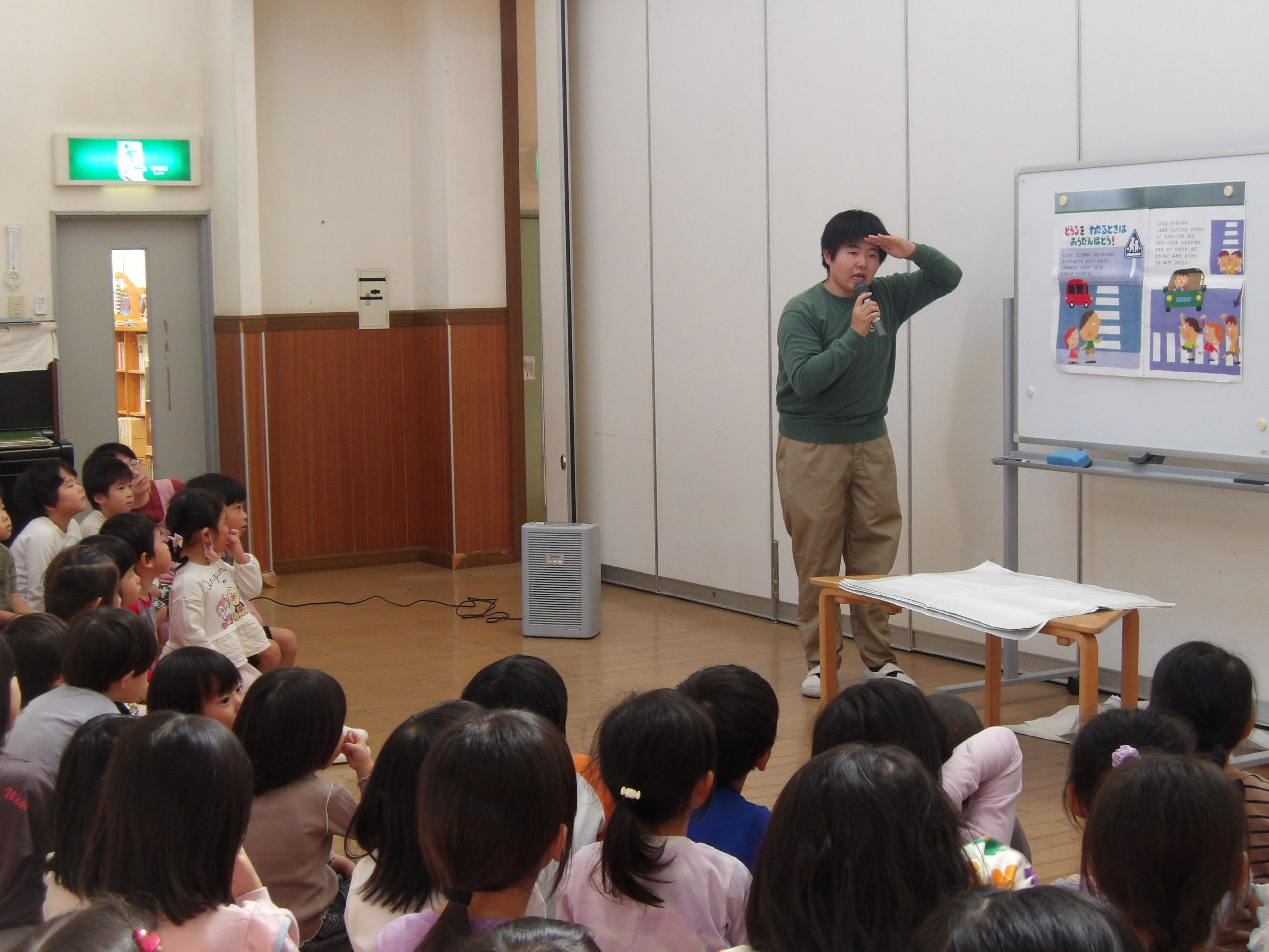 10月15日(水)にファミリークラスの子どもたちを対象に、後期交通安全教室をしました。交通ルールや駐車場でのお約束などの話を聞きました。その後みんなで〇✕クイズで確認しました。