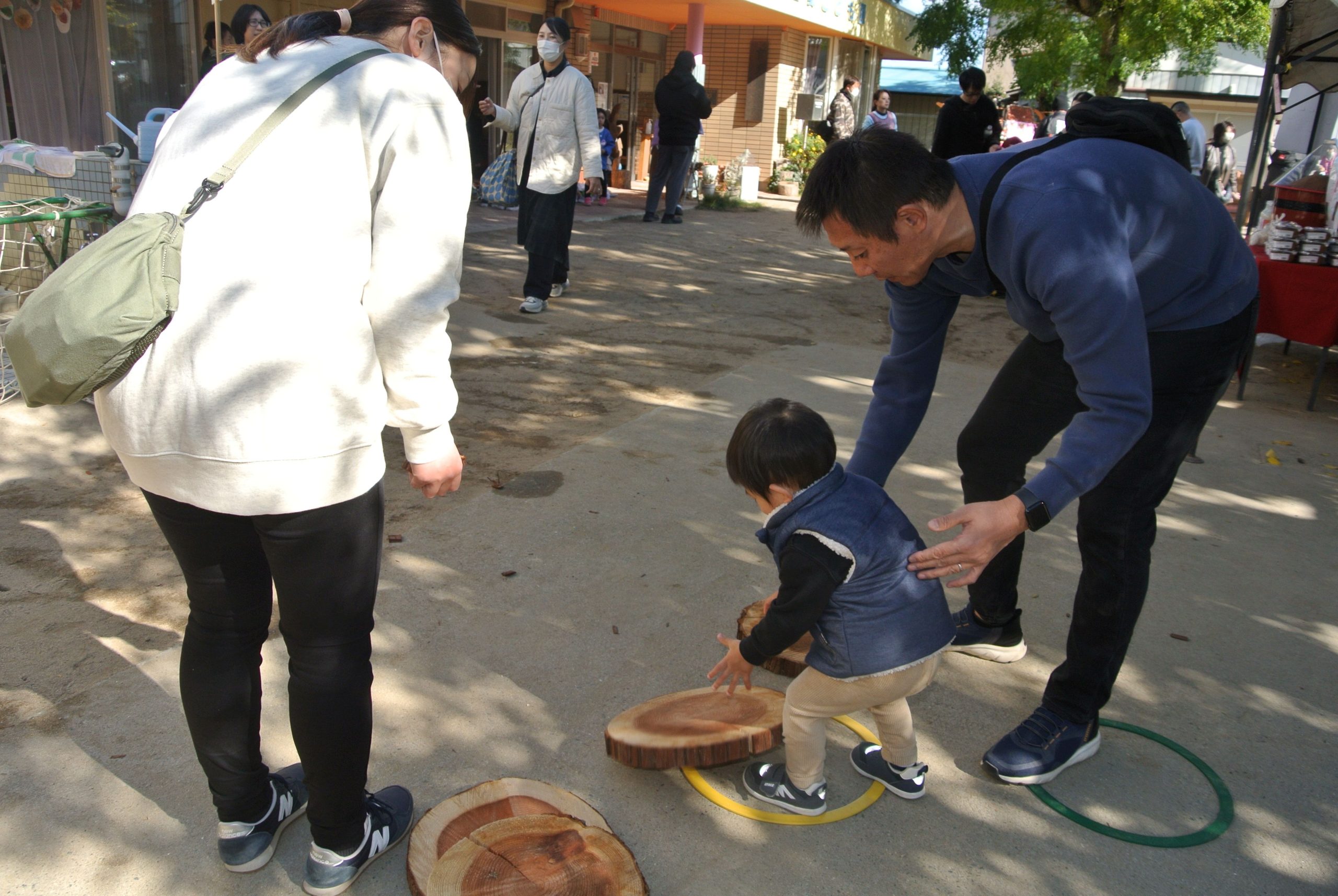 11月15日(土)にせいあいまつりを行いました。晴天に恵まれ、こども園の園児、保護者、地域の方などたくさんの人たちに来場していただき盛大に行うことができました。遊びのコーナーで使用した丸太の「円盤」は、森林アカデミーさんと相双農林事務所森林林業部林業課の方にご協力いただきました。今年の保育テーマ「森」を感じていただけたかと思います。たくさんの笑顔が見られました。ご協力くださった方々、ありがとうございました。