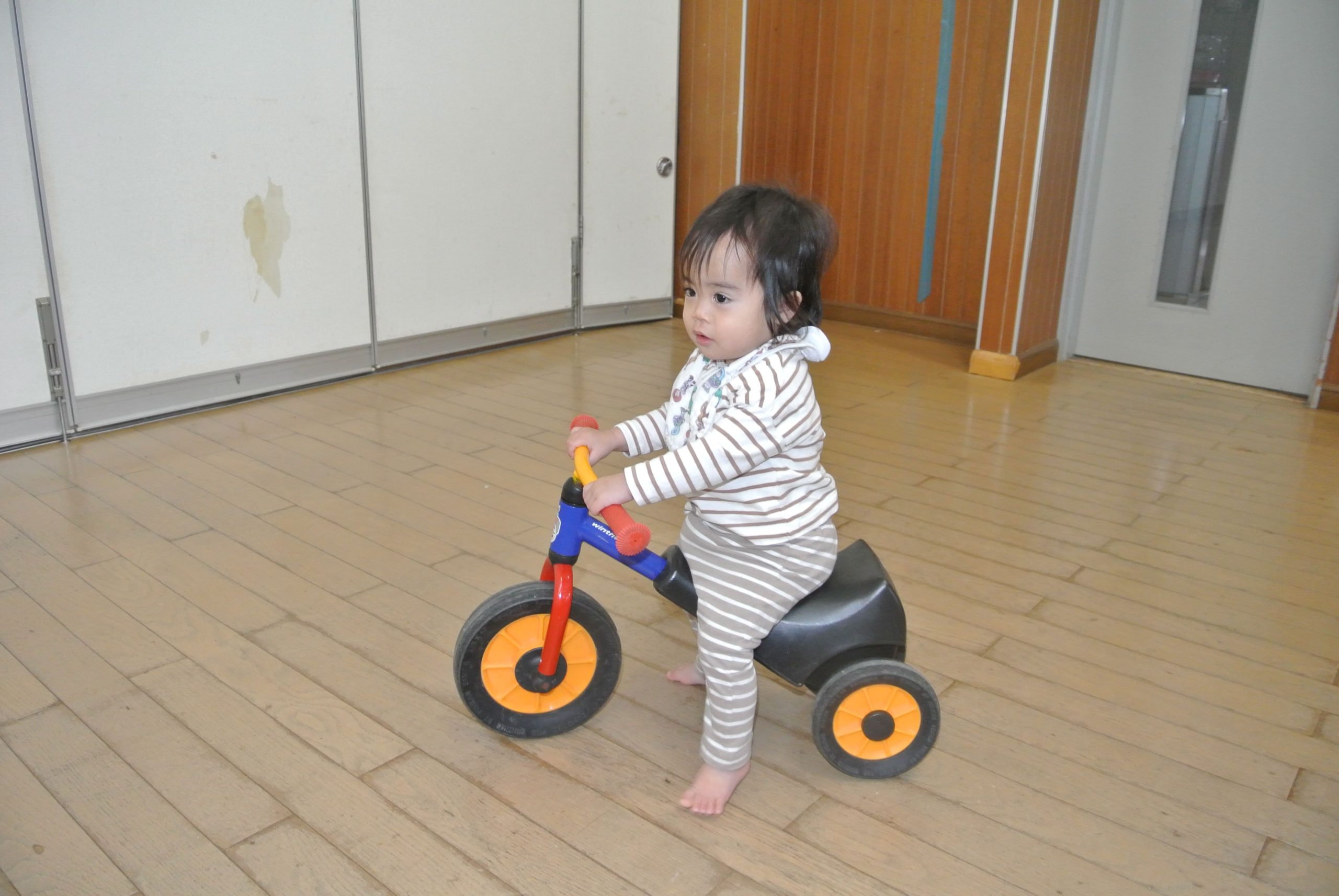 お部屋から広いホールへ行き、マットの山登りや乗り物に乗って遊びました。広い場所にも慣れてニコニコの笑顔で遊んでいました。