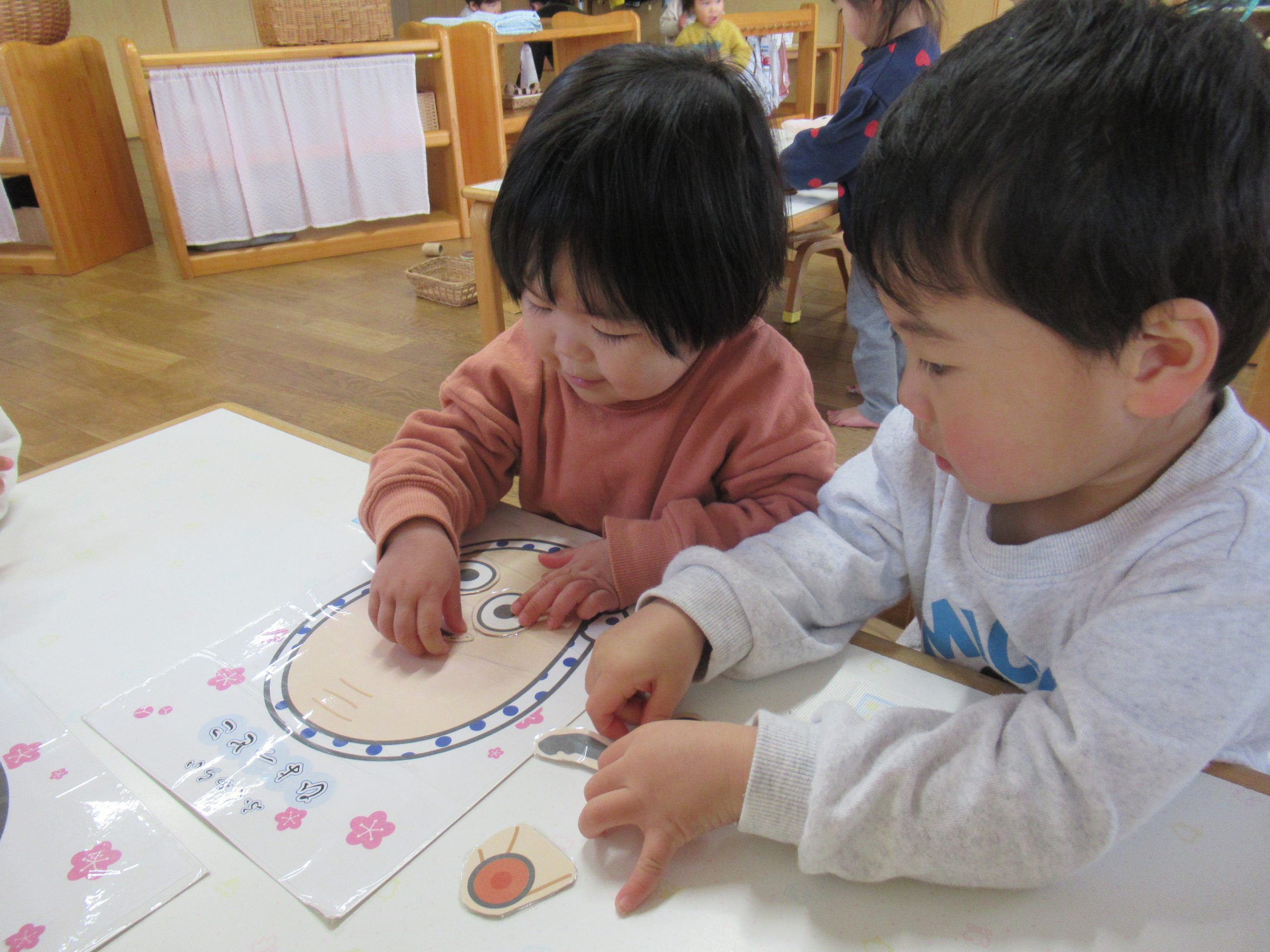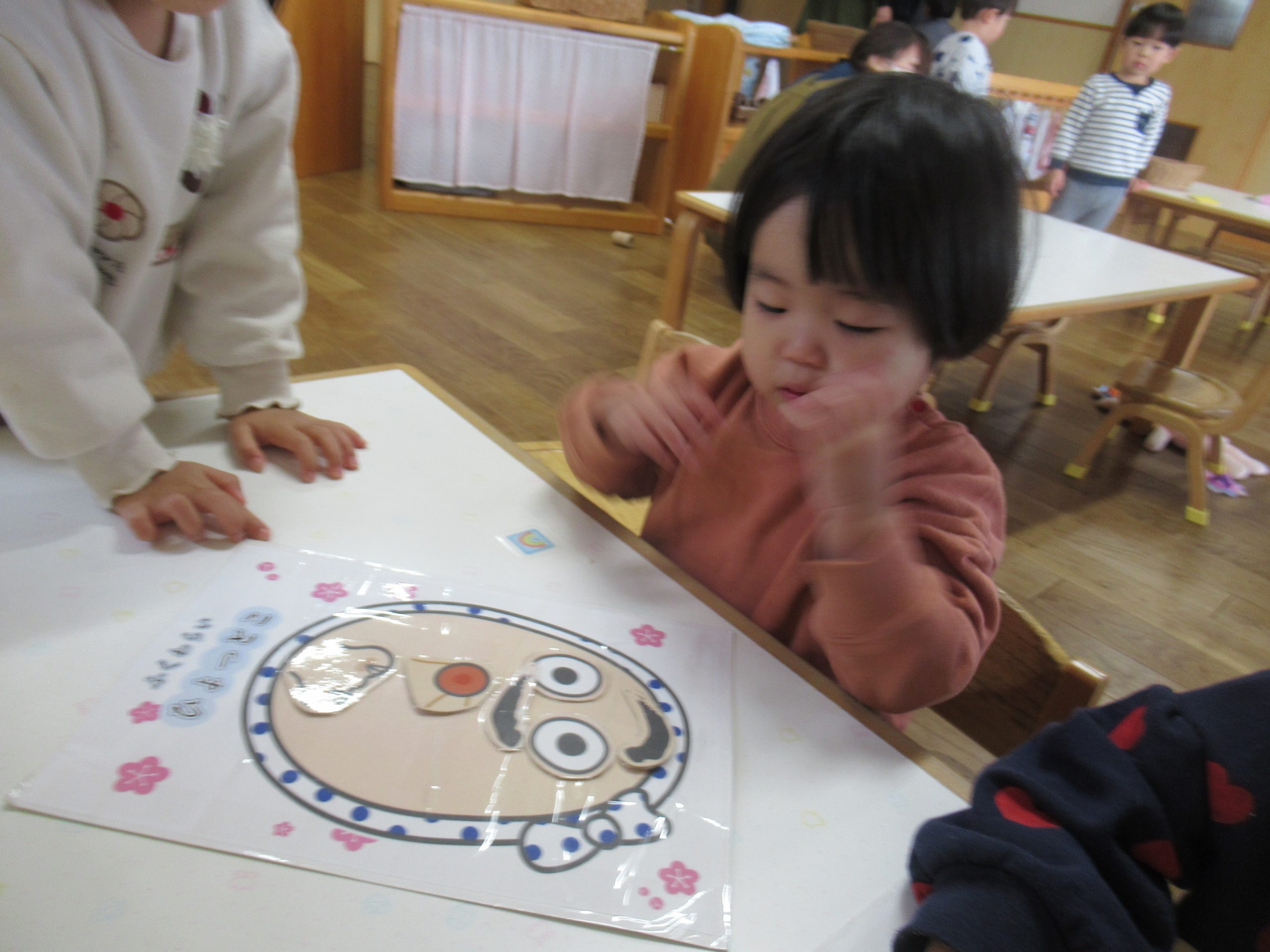 笑ってはいけない福笑いなんです。それはみんな真剣に悩み(?)ながら、一所懸命やっているからです。でも笑ってしまう!お正月に相応しい福笑いでした。お家の人もお子さんと一緒にこの写真を見て、一緒に笑ってください。良い一年になりますように。